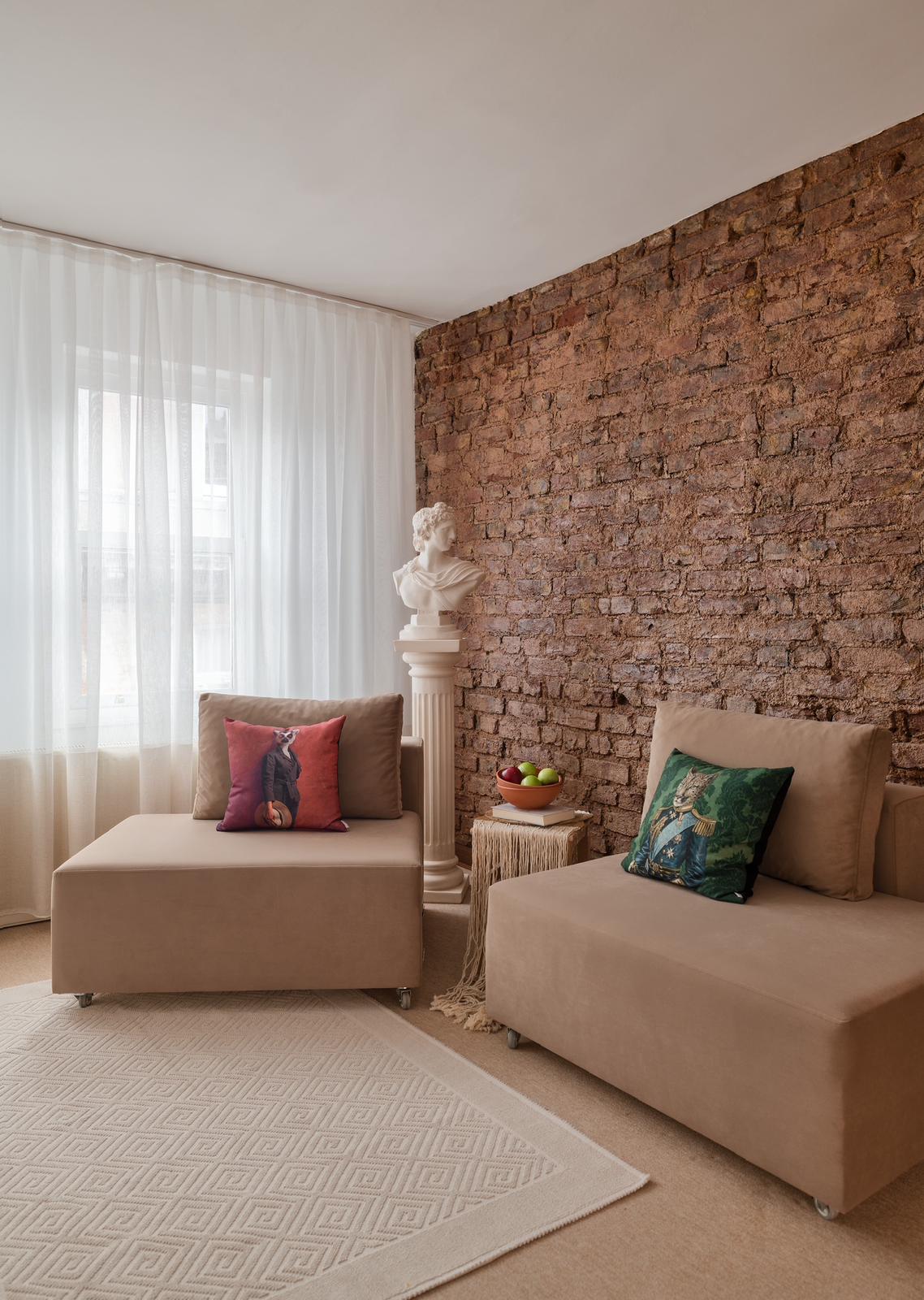 60 m²’lik bu tasarım daire, küçük ama fonksiyonel bir yaşam alanı yaratmak için baştan sona kurgulandı. Dairenin genel tasarımı, maksimum ferah